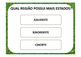 | Nº Visualizações: 1105 Nº Pranchas Relacionadas: 19 Tipo: PowerPoint Prancha Dinâmica: SIM Descrição: Atividade para ser usada no computador. Contém cinco perguntas sobre as regiões do Brasil. Nível: iniciante Autor: Larissa da Rocha Guimarães Profissão: Aluna de Graduação de Terapia Ocupacional da UFRJ E-mail: l.rocha08@gmail.com | |||||||||