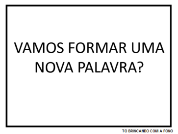 | Nº Visualizações: 770 Nº Pranchas Relacionadas: 7 Tipo: TOBrincando com a Fono Prancha Dinâmica: NÃO Descrição: Atividade que permite a troca das primeiras letras de cada palavra e a formação de uma nova palavra. Tem o apoio visual e a forma escrita da palavra original e o apoio visual e parte da nova palavra que será formada. Nível: iniciante Autor: Projeto TO Brincando com a Fono Profissão: Universidade Federal do Rio de Janeiro E-mail: tobrincandoufrj@gmail.com | |||||||||