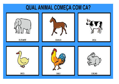 | Nº Visualizações: 734 Nº Pranchas Relacionadas: 7 Tipo: Prancha Fácil Prancha Dinâmica: SIM Descrição: Atividade com animais e objetos. A pessoa terá que encontrar o animal ou o objeto que comece com a sílaba inicial que é pedida. Nível: iniciante Autor: Projeto TO Brincando com a Fono Profissão: Universidade Federal do Rio de Janeiro E-mail: tobrincandoufrj@gmail.com | |||||||||