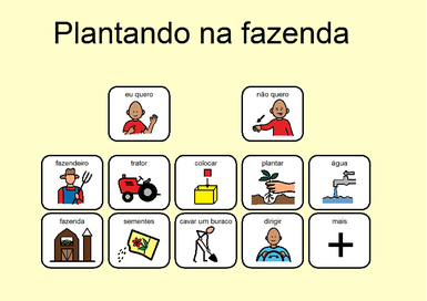 | Nº Visualizações: 1377 Nº Pranchas Relacionadas: 1 Tipo: BoardMaker Prancha Dinâmica: NÃO Descrição: Atividade feita para ser impressa que possue símbolos para auxiliar o usuário a fazer sua plantação em uma fazenda ou a simulação dela em uma brincadeira. Nível: iniciante Autor: Larissa da Rocha Guimarães Profissão: Aluna de Graduação de Terapia Ocupacional da UFRJ E-mail: l.rocha08@gmail.com | |||||||||