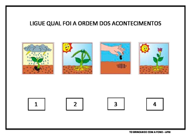 | Nº Visualizações: 752 Nº Pranchas Relacionadas: 4 Tipo: TOBrincando com a Fono Prancha Dinâmica: NÃO Descrição: Atividade de Sequência Lógica. A criança deve ligar qual foi a ordem dos acontecimentos da sequência. Nível: avançado Autor: Projeto TO Brincando com a Fono Profissão: Universidade Federal do Rio de Janeiro E-mail: tobrincandoufrj@gmail.com | |||||||||