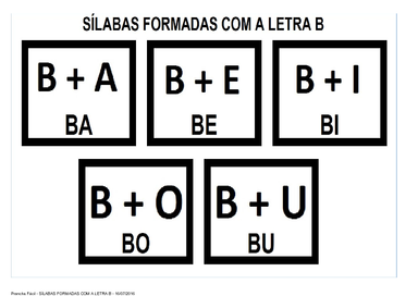 | Nº Visualizações: 1399 Nº Pranchas Relacionadas: 11 Tipo: Prancha Fácil Prancha Dinâmica: SIM Descrição: A prancha aborda a formação de sílabas com a letra B para que a criança possa conhecer e depois realizar atividades com essas sílabas. Nível: iniciante Autor: Projeto TO Brincando com a Fono Profissão: Universidade Federal do Rio de Janeiro E-mail: tobrincandoufrj@gmail.com | |||||||||