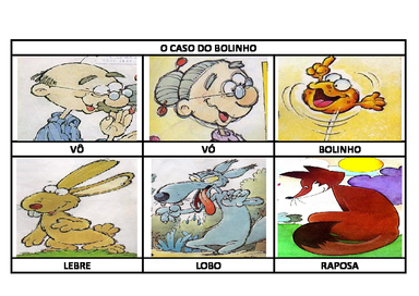 | Nº Visualizações: 1346 Nº Pranchas Relacionadas: 26 Tipo: Word Prancha Dinâmica: NÃO Descrição: Prancha temática inspirada no livro de Tatiana Belinky "O caso do Bolinho". Nível: iniciante Autor: Eleni Carvalho Profissão: Professora de Educação Especial E-mail: elecarvalho@hotmail.com.br | |||||||||