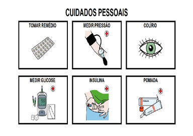 | Nº Visualizações: 802 Nº Pranchas Relacionadas: 5 Tipo: Prancha Fácil Prancha Dinâmica: NÃO Descrição: Conjunto de pranchas referentes aos cuidados pessoais no hospital. Nível: iniciante Autor: Comunicação Alternativa em Hospitais: Levantamento de vocabulário para uso no ambiente hospitalar Profissão: Terapeuta Ocupacional E-mail: isabelabhernandes@gmail.com | |||||||||