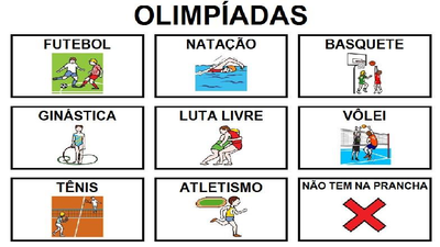 | Nº Visualizações: 691 Nº Pranchas Relacionadas: 2 Tipo: Prancha Fácil Prancha Dinâmica: NÃO Descrição: Conjunto de pranchas referentes as modalidades dos esportes nas olímpicas. Nível: iniciante Autor: Projeto de Comunicação Alternativa Profissão: Terapia Ocupacional E-mail: kvalle.ufrj@gmail.com | |||||||||