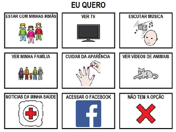 | Nº Visualizações: 1256 Nº Pranchas Relacionadas: 4 Tipo: Prancha Fácil Prancha Dinâmica: NÃO Descrição: Conjunto de pranchas hospitalares que tem como intuito favorecer o diálogo entre o profissional e o paciente. Nível: iniciante Autor: Projeto de Comunicação Alternativa em Hospitais Profissão: Terapia Ocupacional E-mail: elidadizhey@gmail.com | |||||||||