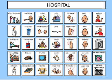 | Nº Visualizações: 2847 Nº Pranchas Relacionadas: 1 Tipo: BoardMaker Prancha Dinâmica: NÃO Descrição: Através desta prancha o usuário pode expressar-se com símbolos referentes a profissionais do ambiente hospitalar, alimentos, diversão, posições em que quer ficar, sentimentos, desejos entre outros. Nível: iniciante Autor: Márcia Ribeiro de Lima Profissão: Estudante de Terapia Ocupacional - UFRJ E-mail: marciaribeiro.to@ufrj.br | |||||||||