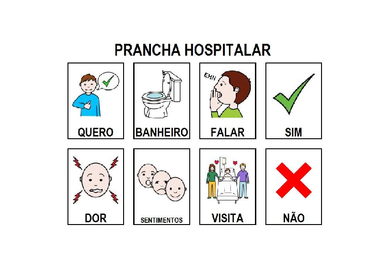 | Nº Visualizações: 1452 Nº Pranchas Relacionadas: 14 Tipo: Prancha Fácil Prancha Dinâmica: SIM Descrição: Prancha destinada a pacientes hospitalizados que estejam impossibilitados de falar. Foi elaborada por Bárbara Pastore; Camila Félix; Elisangela Martins; Kátia Amadeu e Mayara Sales. Nível: intermediário Autor: Elisangela Monteiro de Souza Martins Profissão: Estudante E-mail: elisangela_msm@hotmail.com | |||||||||