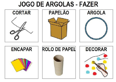 | Nº Visualizações: 583 Nº Pranchas Relacionadas: 2 Tipo: Prancha Fácil Prancha Dinâmica: NÃO Descrição: Jogo de argolas feito com papelão, rolo de papel, papéis coloridos e argolas. O objetivo do jogo é conseguir lançar e acertar a argola no rolo de papel. Nível: iniciante Autor: Larissa Aquino e Isabel Arnoud Profissão: estudantes de Terapia Ocupacional E-mail: projetoescola@gmail.com | |||||||||