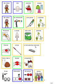 | Nº Visualizações: 761 Nº Pranchas Relacionadas: 1 Tipo: Comunicar com Símbolos Prancha Dinâmica: NÃO Descrição: Texto sobre os índios escrito com símbolos. Nível: iniciante Autor: Miryam Pelosi Profissão: Terapeuta Ocupacional E-mail: miryam.pelosi@gmail.com | |||||||||