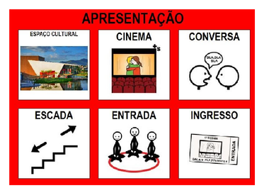 | Nº Visualizações: 816 Nº Pranchas Relacionadas: 7 Tipo: Prancha Fácil Prancha Dinâmica: NÃO Descrição: Prancha de comunicação elaborada para facilitar a visita em um espaço cultural. Nível: iniciante Autor: Miryam Pelosi Profissão: Terapeuta Ocupacional E-mail: miryam.pelosi@gmail.com | |||||||||