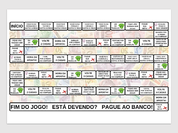 | Nº Visualizações: 1124 Nº Pranchas Relacionadas: 11 Tipo: PowerPoint Prancha Dinâmica: NÃO Descrição: Jogo de tabuleiro de matemática e o objetivo do jogo é bater metas. O jogo contém o manual, tabuleiro, cartas profissões, cartas compras e cartões de metas. Nível: iniciante Autor: Beatriz Branquinho Profissão: Estudante de Terapia Ocupacional UFRJ E-mail: bbcbea.to@gmail.com | |||||||||