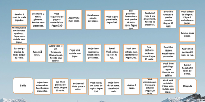 | Nº Visualizações: 625 Nº Pranchas Relacionadas: 4 Tipo: PowerPoint Prancha Dinâmica: NÃO Descrição: Tabuleiro adaptado para o Jogo da Vida, dinheiro para imprimir e utilizar no jogo e manual com as instruções. Nível: iniciante Autor: Caroline Borges Profissão: Estudante de Terapia Ocupacional E-mail: carolinee_bcs@hotmail.com | |||||||||