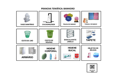 | Nº Visualizações: 1864 Nº Pranchas Relacionadas: 1 Tipo: PowerPoint Prancha Dinâmica: NÃO Descrição: Prancha de comunicação desenvolvida com o software PowerPoint para ser impressa com vocabulário pertinente ao tema banheiro. Nível: iniciante Autor: Grupo de Professores das Salas Multifuncionais Profissão: Professores das Salas Multifuncionais E-mail: miryam.pelosi@gmail.com | |||||||||