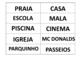 | Nº Visualizações: 1475 Nº Pranchas Relacionadas: 2 Tipo: PowerPoint Prancha Dinâmica: NÃO Descrição: Atividade desenvolvida com o software PowerPoint para ser impressa. Conjunto de figuras relacionadas a passeios e suas palavras. Pode ser usado para pareamento, como jogo de bingo ou memória no trabalho de alfabetização. Nível: iniciante Autor: Janaina Larrate Profissão: Professora da Oficina Vivencial / E-IHA E-mail: ofvivencialiha@rio.rj.gov.br | |||||||||