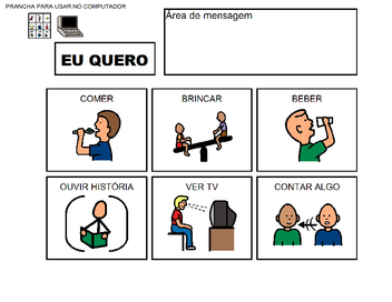 | Nº Visualizações: 4294 Nº Pranchas Relacionadas: 1 Tipo: SDP Prancha Dinâmica: SIM Descrição: Atividade para ser usada no computador ou impressa. O usuário escolhe o que ele quer, a partir de varredura ou acesso direto. Nível: iniciante Autor: Amanda Carlou Andrade Santos Profissão: Professora de Sala de Recursos Multifuncional E-mail: amandacarlou@uol.com.br | |||||||||