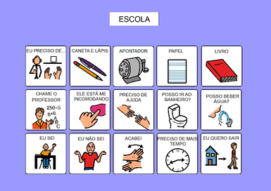 | Nº Visualizações: 2042 Nº Pranchas Relacionadas: 1 Tipo: BoardMaker Prancha Dinâmica: NÃO Descrição: Prancha para ser impressa e utilizada no contexto escolar. Permite ao usuário se comunicar dentro da sala de aula. Nível: iniciante Autor: Layla Sanches Profissão: Aluna de Graduação de Terapia Ocupacional da UFRJ E-mail: laylarsanches@gmail.com | |||||||||