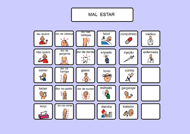 | Nº Visualizações: 1747 Nº Pranchas Relacionadas: 1 Tipo: BoardMaker Prancha Dinâmica: NÃO Descrição: Prancha de comunicação para ser impressa. O usuário pode utilizá-la para relatar situações desconfortáveis, como: mal estar, dores e outros. Nível: iniciante Autor: Priscila Rodrigues Profissão: Estudante de Terapia Ocupacional da UFRJ E-mail: priscila.rodriguesto@gmail.com | |||||||||