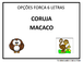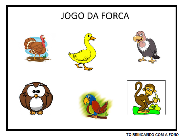 | Nº Visualizações: 1188 Nº Pranchas Relacionadas: 10 Tipo: TOBrincando com a Fono Prancha Dinâmica: NÃO Descrição: Atividade de forca com 6 opções de animais (duas com animais de 4 letras, duas com animais de 5 letras e duas com animais de 6 letras). A atividade possui apoio visual com as figuras dos animais. Nível: iniciante Autor: TObrincando com a Fono Profissão: Universidade Federal do Rio de Janeiro E-mail: tobrincandoufrj@gmail.com | |||||||||