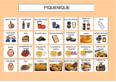 | Nº Visualizações: 1268 Nº Pranchas Relacionadas: 1 Tipo: SDP Prancha Dinâmica: SIM Descrição: Prancha de comunicação para ser utilizada no computador ou para ser impressa com a qual o usuário pode ajudar a montar um piquinique. Nível: iniciante Autor: Camilla Costa Profissão: Aluna de Graduação de Terapia Ocupacional da UFRJ E-mail: camillafcosta@gmail.com | |||||||||