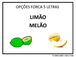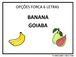 | Nº Visualizações: 1894 Nº Pranchas Relacionadas: 11 Tipo: TOBrincando com a Fono Prancha Dinâmica: NÃO Descrição: Jogo da Forca com sete opções de frutas (três com frutas de 4 letras, duas com frutas de 5 letras e duas com frutas de 6 letras). A atividade possui apoio visual com as figuras das frutas que deverão ser escritas. Nível: iniciante Autor: TObrincando com a Fono Profissão: Universidade Federal do Rio de Janeiro E-mail: tobrincandoufrj@gmail.com | |||||||||