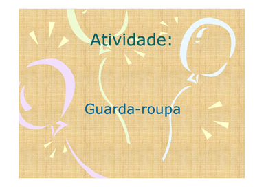 | Nº Visualizações: 1238 Nº Pranchas Relacionadas: 15 Tipo: PowerPoint Prancha Dinâmica: SIM Descrição: Atividade desenvolvida com o software PowerPoint que trabalha com o conceito de roupas adequadas para cada atividade ou temperatura. Para ser usado com o mouse. Nível: iniciante Autor: Wanneli S. Rosa Profissão: Aluna de Graduação de Terapia Ocupacional da UFRJ E-mail: wanneli.rosa@gmail.com | |||||||||