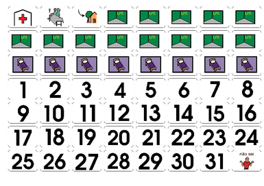 | Nº Visualizações: 1051 Nº Pranchas Relacionadas: 1 Tipo: BoardMaker Prancha Dinâmica: NÃO Descrição: Nesta prancha encontram-se símbolos de números de 1 a 31, símbolos de cama, casa, hospital, UTI e maca. Pode ser usada em contexto hospitalar. Nível: iniciante Autor: Miryam Pelosi Profissão: Terapeuta Ocupacional E-mail: miryam.pelosi@gmail.com | |||||||||