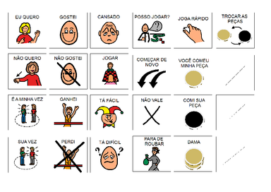 | Nº Visualizações: 1189 Nº Pranchas Relacionadas: 1 Tipo: BoardMaker Prancha Dinâmica: NÃO Descrição: Prancha de comunicação para ser impressa. Pode ser utilizada para jogar dama. Nível: iniciante Autor: Priscila Rodrigues Profissão: Estudante de Terapia Ocupacional da UFRJ E-mail: priscila.rodriguesto@gmail.com | |||||||||