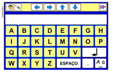 | Nº Visualizações: 1163 Nº Pranchas Relacionadas: 1 Tipo: Overlaymaker Prancha Dinâmica: SIM Descrição: Atividade que apresenta um teclado com as letras do alfabeto. Permite ao usuário montar palavras, frases e textos. Nível: iniciante Autor: Naila Porto Machado de Oliveira Profissão: Fonoaudióloga E-mail: naila.bela@hotmail.com | |||||||||
