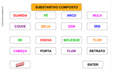| Nº Visualizações: 1178 Nº Pranchas Relacionadas: 1 Tipo: Overlaymaker Prancha Dinâmica: SIM Descrição: Atividade que apresenta várias palavras espalhadas para o usuário formar substantivos compostos. Nível: iniciante Autor: Naila Porto Machado de Oliveira Profissão: Fonoaudióloga E-mail: naila.bela@hotmail.com | |||||||||