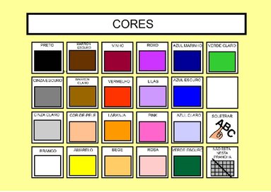 | Nº Visualizações: 1355 Nº Pranchas Relacionadas: 1 Tipo: BoardMaker Prancha Dinâmica: NÃO Descrição: Nesta prancha são encontradas 21 opções de cores.Pode ser usada para comunicar sobre cores ou como jogo de pares ou memória, sendo impressa em duas cópias. Nível: iniciante Autor: Márcia Ribeiro de Lima Profissão: Estudante de Terapia Ocupacional - UFRJ E-mail: marcia.rdlima@gmail.com | |||||||||
