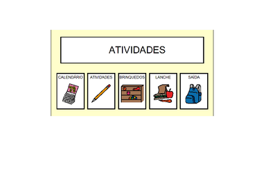 | Nº Visualizações: 1262 Nº Pranchas Relacionadas: 1 Tipo: BoardMaker Prancha Dinâmica: NÃO Descrição: Prancha para ser impressa com 5 opções de atividades escolares para escolher. Nível: iniciante Autor: Valéria Alexandre da Silva Profissão: Professora de Sala de Recursos Multifuncional E-mail: valleriajc@gmail.com | |||||||||