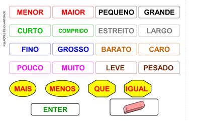 | Nº Visualizações: 1195 Nº Pranchas Relacionadas: 1 Tipo: Overlaymaker Prancha Dinâmica: SIM Descrição: Várias palavras que servem para fazer relações de quantidade. Nível: iniciante Autor: Naila Porto Machado de Oliveira Profissão: Fonoaudióloga E-mail: naila.bela@hotmail.com | |||||||||