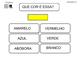 | Nº Visualizações: 1383 Nº Pranchas Relacionadas: 10 Tipo: SDP Prancha Dinâmica: SIM Descrição: Atividade para ser usada no computador ou impressa que ensina aos usuários as cores das coisas na natureza. Pode ser usada com acesso direto ou varredura. Nível: intermediário Autor: Lindalva Mº Ramos dos Santos Profissão: Professora de Sala de Recursos Multifuncional E-mail: vallin1@bol.com.br | |||||||||