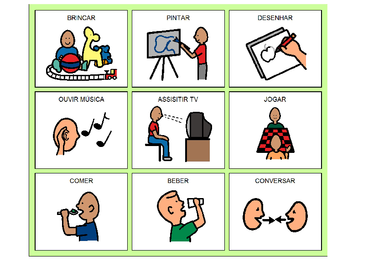 | Nº Visualizações: 1544 Nº Pranchas Relacionadas: 1 Tipo: BoardMaker Prancha Dinâmica: NÃO Descrição: Prancha para ser impressa com 9 opções de atividades para escolher. Nível: iniciante Autor: Grupo de Formação dos Professores Profissão: Professor de Sala de Recursos Multifuncional E-mail: miryam.pelosi@gmail.com | |||||||||