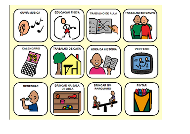 | Nº Visualizações: 1531 Nº Pranchas Relacionadas: 1 Tipo: BoardMaker Prancha Dinâmica: NÃO Descrição: Prancha para ser impressa com 12 opções de atividades para escolher. Nível: iniciante Autor: Thyene da Silva Burkle Profissão: Professora de Sala de Recursos Multifuncional E-mail: thablebr@yahoo.com.br | |||||||||