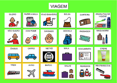 | Nº Visualizações: 1004 Nº Pranchas Relacionadas: 1 Tipo: BoardMaker Prancha Dinâmica: NÃO Descrição: Prancha confeccionada com símbolos referentes a viagem. Nível: iniciante Autor: Thays Rodrigues Pires Profissão: Aluna de Graduação de Terapia Ocupacional da UFRJ E-mail: thaysrpires@gmail.com | |||||||||