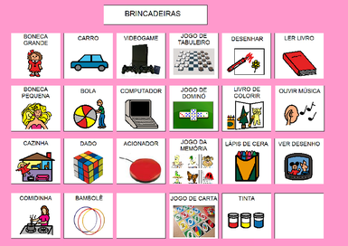 | Nº Visualizações: 979 Nº Pranchas Relacionadas: 1 Tipo: BoardMaker Prancha Dinâmica: NÃO Descrição: Prancha desenvolvida para ser impressa para ser utilizada na escolha de brincadeiras. Nível: iniciante Autor: Thays Rodrigues Pires Profissão: Aluna de Graduação de Terapia Ocupacional da UFRJ E-mail: thaysrpires@gmail.com | |||||||||