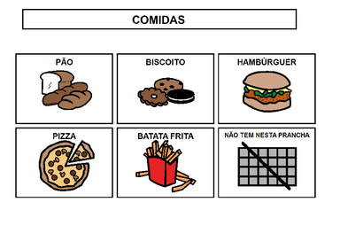 | Nº Visualizações: 1121 Nº Pranchas Relacionadas: 1 Tipo: BoardMaker Prancha Dinâmica: NÃO Descrição: Prancha com opções de comidas para o usuário escolher o que deseja comer. Nível: iniciante Autor: Miryam Bonadiu Pelosi Profissão: Terapeuta Ocupacional E-mail: miryam.pelosi@gmail.com | |||||||||