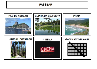 | Nº Visualizações: 1071 Nº Pranchas Relacionadas: 1 Tipo: BoardMaker Prancha Dinâmica: NÃO Descrição: Prancha com opções de lugares turísticos para o usuário escolher aonde quer ir ou conversar sobre onde ele foi. Nível: iniciante Autor: Miryam Bonadiu Pelosi Profissão: Terapeuta Ocupacional E-mail: miryam.pelosi@gmail.com | |||||||||
