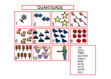 | Nº Visualizações: 1882 Nº Pranchas Relacionadas: 1 Tipo: BoardMaker Prancha Dinâmica: NÃO Descrição: Prancha para ser impressa contendo nímeros e suas quantidades de 1 a 10. Nível: iniciante Autor: Lindinete Telles Menezes Profissão: Professora de Sala de Recursos Multifuncional E-mail: lindimenezes@hotmail.com | |||||||||