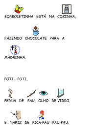 | Nº Visualizações: 1818 Nº Pranchas Relacionadas: 1 Tipo: Comunicar com Símbolos Prancha Dinâmica: NÃO Descrição: Atividade para ser usada no computador com a cantiga "Borboletinha" Nível: iniciante Autor: Camilla Costa Profissão: Aluna de Graduação de Terapia Ocupacional da UFRJ E-mail: camillafcosta@gmail.com | |||||||||