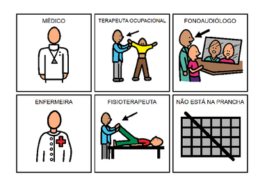 | Nº Visualizações: 1165 Nº Pranchas Relacionadas: 1 Tipo: BoardMaker Prancha Dinâmica: NÃO Descrição: Prancha para ser impressa com profissionais da área da saúde. Nível: iniciante Autor: Miryam Pelosi Profissão: Terapeuta Ocupacional E-mail: miryam.pelosi@gmail.com | |||||||||