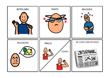 | Nº Visualizações: 1124 Nº Pranchas Relacionadas: 1 Tipo: BoardMaker Prancha Dinâmica: NÃO Descrição: Atividade para auxiliar a comunicação. Nível: iniciante Autor: Thainá Motta Do Couto Profissão: Aluna de Terapia Ocupacional - UFRJ E-mail: thainamotta1@gmail.com | |||||||||