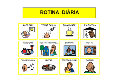 | Nº Visualizações: 5878 Nº Pranchas Relacionadas: 1 Tipo: BoardMaker Prancha Dinâmica: NÃO Descrição: Prancha para ser impressa com 12 opções de atividades diárias para o usuário escolher o que quer fazer. Nível: iniciante Autor: Lindinete Telles Menezes Profissão: Professora de Sala de Recursos Multifuncional E-mail: lindimenezes@hotmail.com | |||||||||