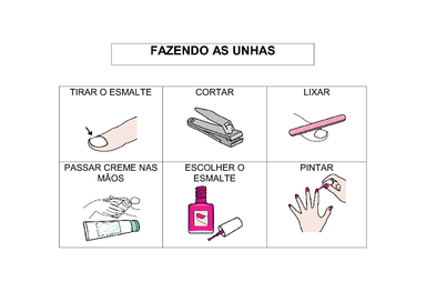 | Nº Visualizações: 1011 Nº Pranchas Relacionadas: 1 Tipo: Word Prancha Dinâmica: NÃO Descrição: Prancha com as etapas de fazer as unhas. Nível: iniciante Autor: Larissa Fernandes Profissão: Estudante de Terapia Ocupacional UFRJ E-mail: lara_tfernandes@hotmail.com | |||||||||