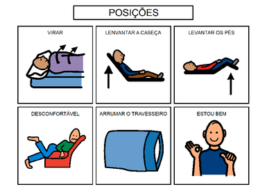 | Nº Visualizações: 1645 Nº Pranchas Relacionadas: 1 Tipo: BoardMaker Prancha Dinâmica: NÃO Descrição: Prancha de comunicação para ser impressa. Esta contém 6 símbolos relacionados a posições, situações de desconforto e desejos. Pode ser utilizada dentro do ambiente hospitalar onde o paciente possa ter dificuldade de trocar de posição ou de se movimentar no leito. Nível: iniciante Autor: Priscila Rodrigues Profissão: Estudante de Terapia Ocupacional da UFRJ E-mail: priscila.rodriguesto@gmail.com | |||||||||
