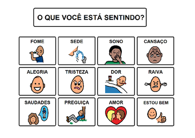 | Nº Visualizações: 2029 Nº Pranchas Relacionadas: 1 Tipo: BoardMaker Prancha Dinâmica: NÃO Descrição: Prancha para ser impressa com 12 opções onde o usuário indica o que e/ou como está se sentindo. Nível: iniciante Autor: Maria das Graças Oliveira Silva Profissão: Professora de Sala de Recursos Multifuncional E-mail: mgo.silva@gmail.com | |||||||||