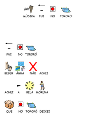 | Nº Visualizações: 1269 Nº Pranchas Relacionadas: 3 Tipo: Comunicar com Símbolos Prancha Dinâmica: NÃO Descrição: Música infantil produzida com o software Comunicar com símbolos. Nível: iniciante Autor: Larissa Fernandes Profissão: Estudante de Terapia Ocupacional UFRJ E-mail: lara_tfernandes@hotmail.com | |||||||||