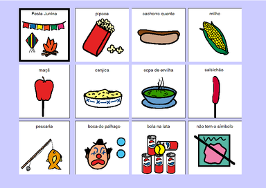 | Nº Visualizações: 1036 Nº Pranchas Relacionadas: 1 Tipo: BoardMaker Prancha Dinâmica: NÃO Descrição: Prancha de comunicação para ser impressa. Pode ser utilizada em festa junina. Nível: iniciante Autor: Priscila Rodrigues Profissão: Estudante de Terapia Ocupacional da UFRJ E-mail: priscila.rodriguesto@gmail.com | |||||||||